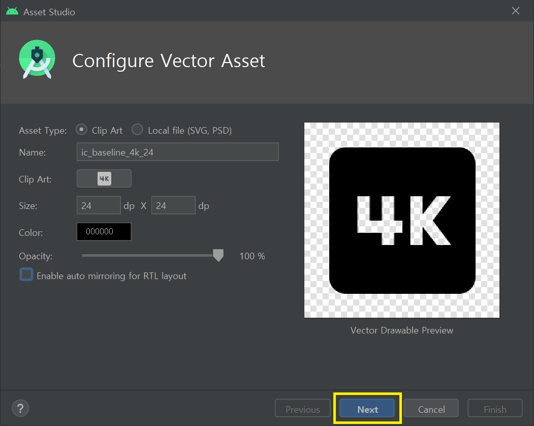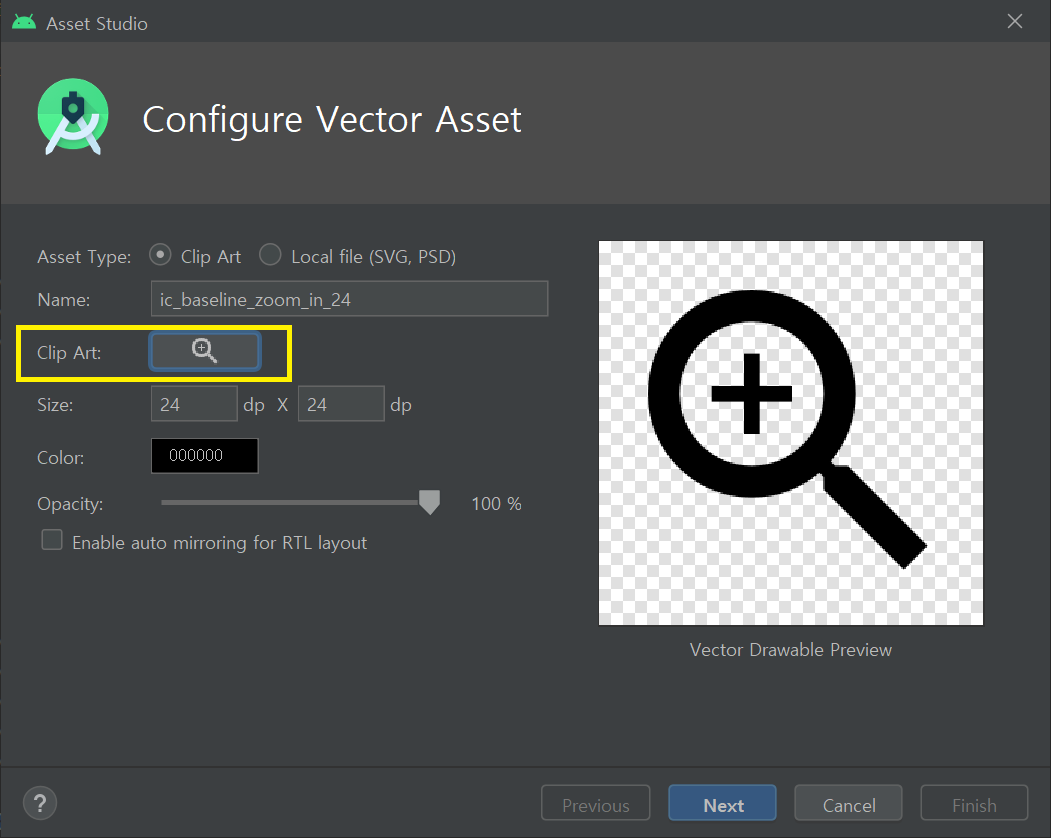 [Android] 안드로이드 스튜디오 디자인도구 Vector Asset을 사용 하는 방법 및 무료 vector 이미지 가져오기