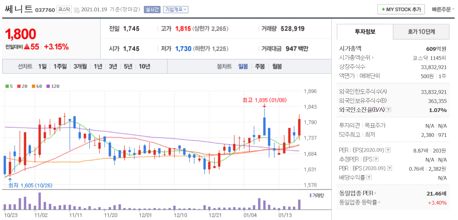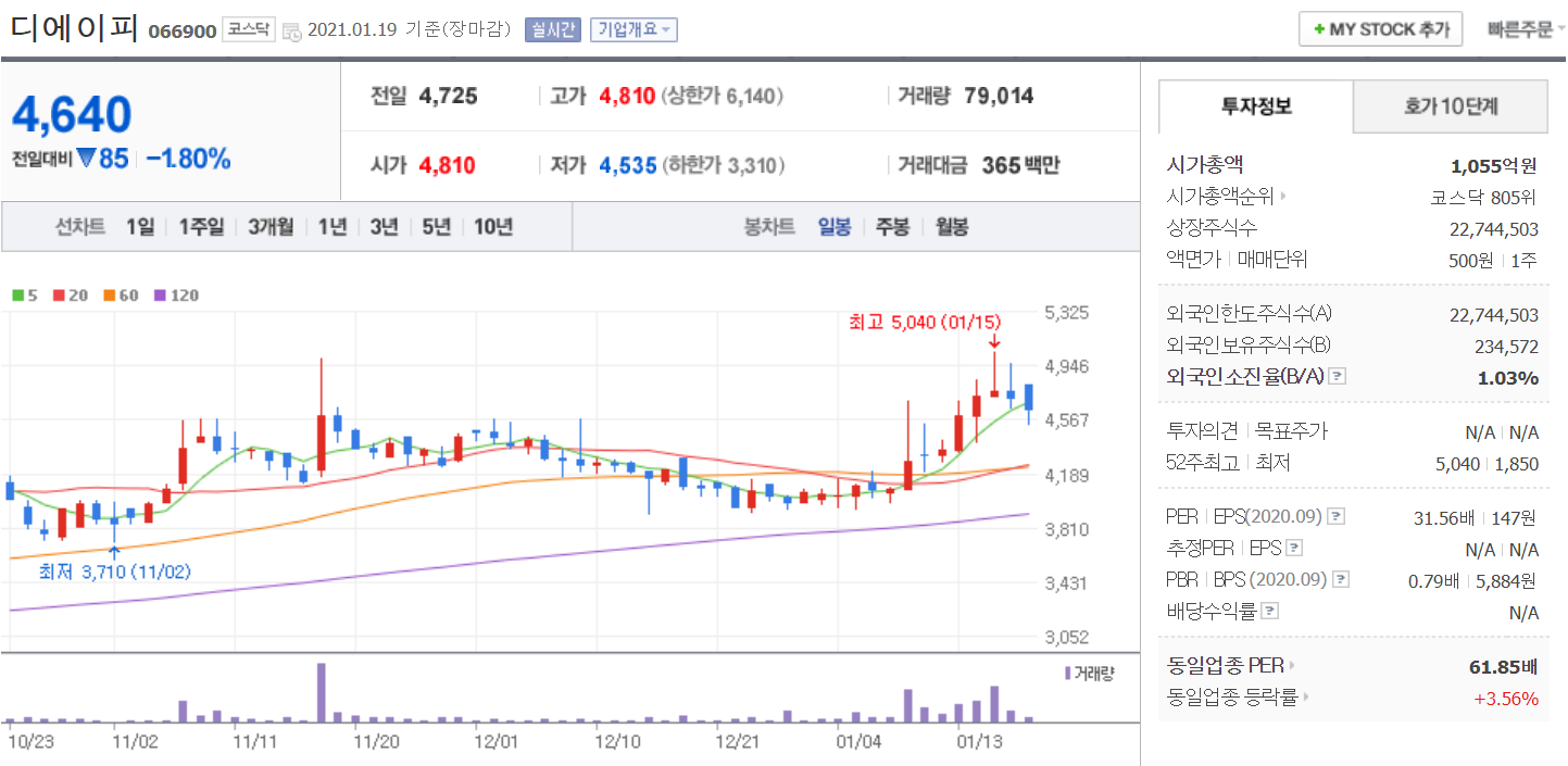 [주식]골든크로스 종목 리스트 및 종목별 차트 보기: 2021.01.19 장종료 기준