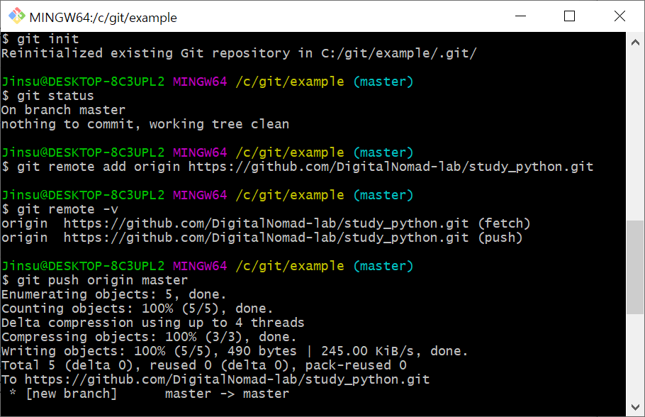 $ git remote add origin https://github.com/DigitalNomad-lab/study_python.git