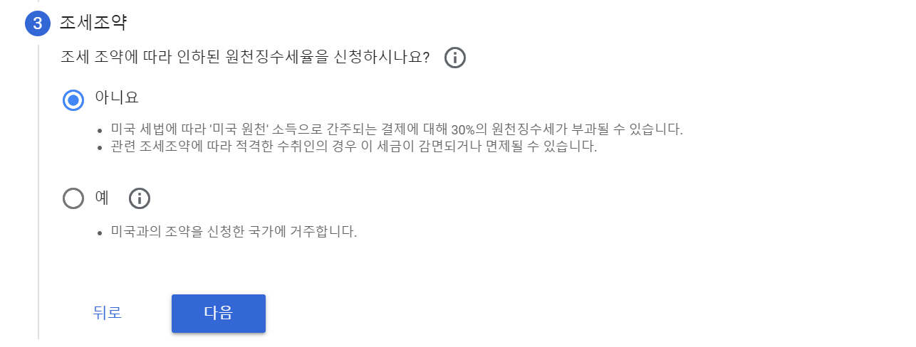 마지막으로 미국에서 광고 수익이 발생했다면 "예"를 선택하세요.