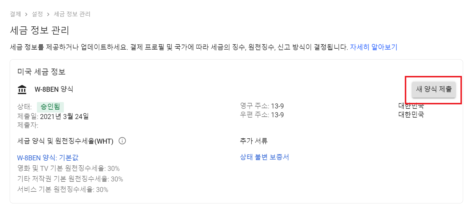 미국에 거주하는 크리에이터의 경우 이미 세금 정보를 제출했을 수 있습니다.