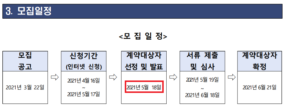 나. 계약대상자 발표 일시 : 2021. 5. 18(화) 18:00
