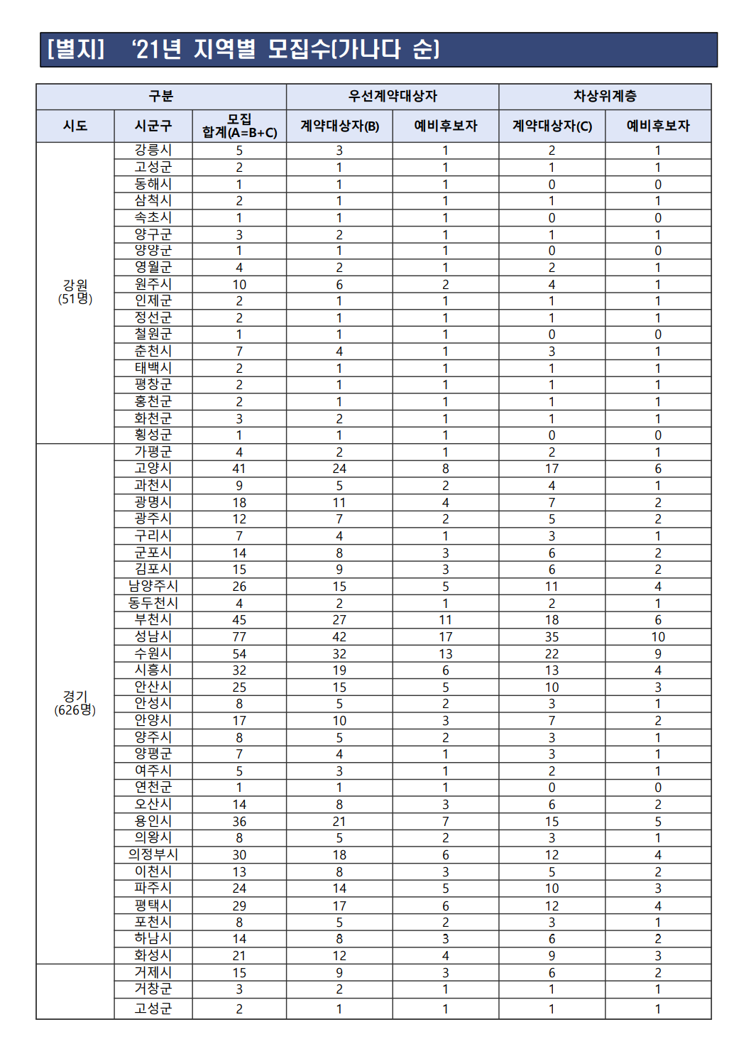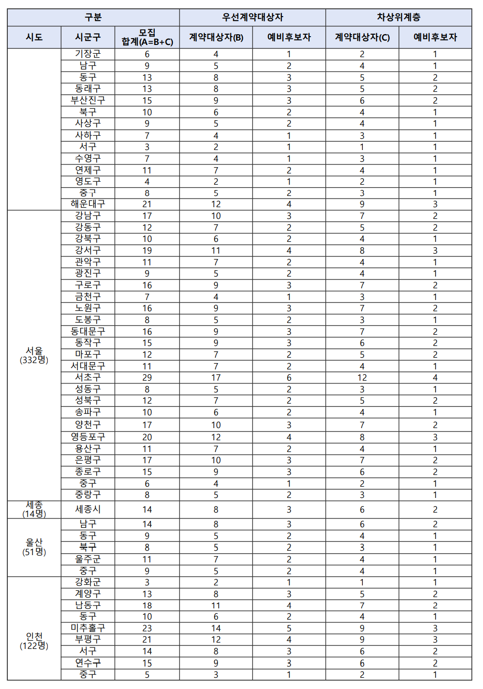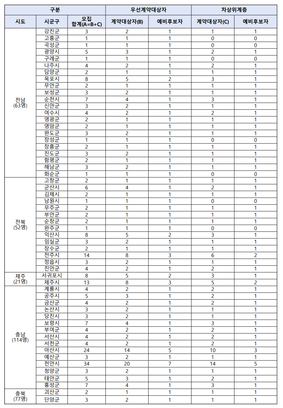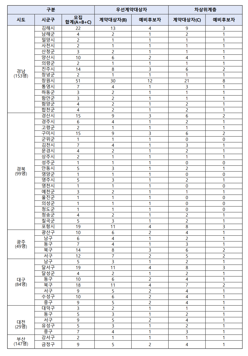 다. 지역별 모집인원