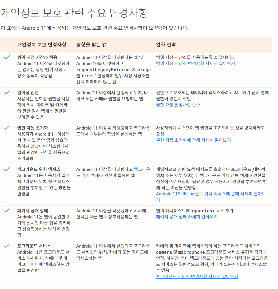 - API 레벨 30 (Android 11) 이상을 타겟팅 하고 동작 변화에 맞게 조정합니다 .