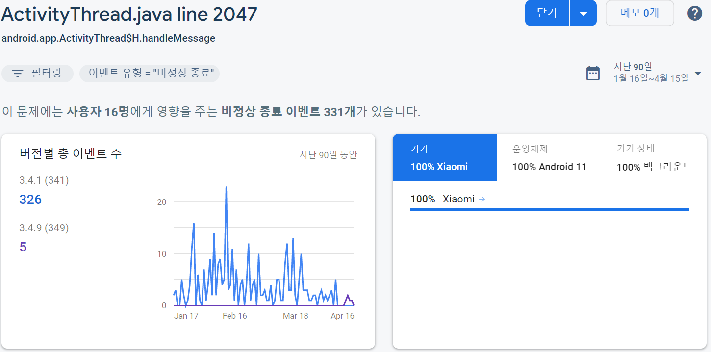앱 사용자들 중에 안드로이드11 최신운영체제를 사용하는 샤오미(Xiaomi) 폰에서 많은 오류 보고서 발생했다.