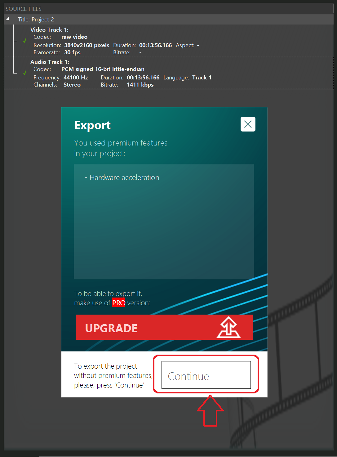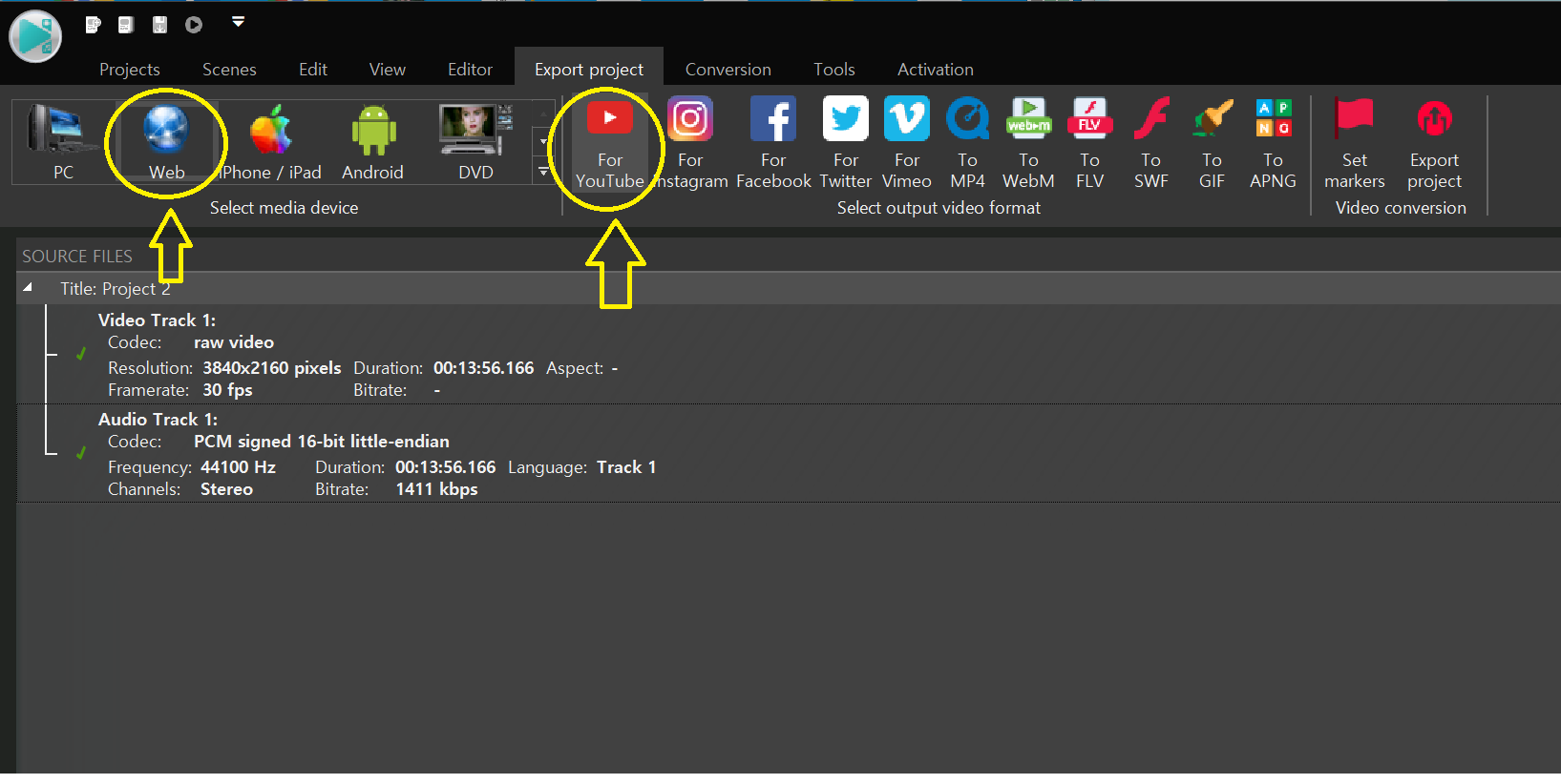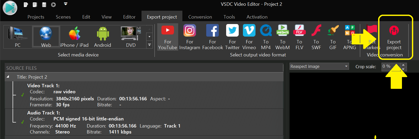 1. VSDC 상단 메뉴의 Export project 메뉴를 클릭합니다.