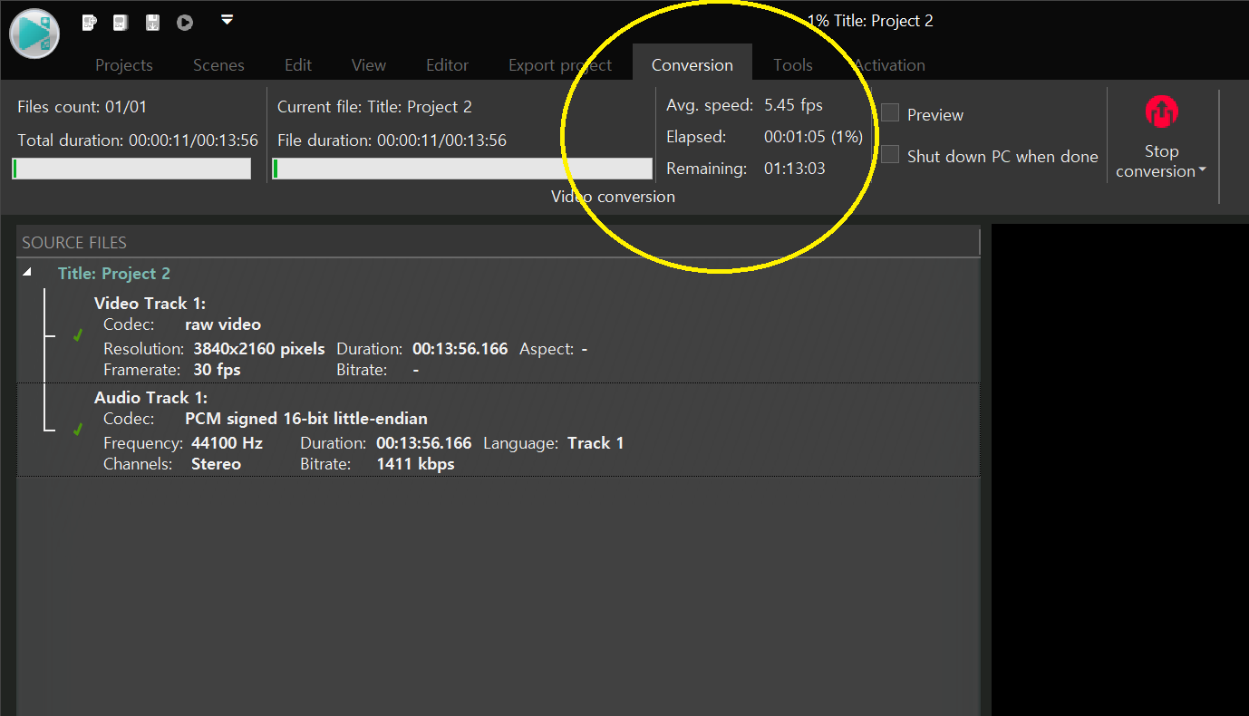 10. 이제 기다리면 되는데, 무료버전이어서 그런것인지, 아니면 컴퓨터가 느려서 그런지 모르겠지만 14분짜리 영상 인코딩하는데 걸리는 시간은 1시간 12분 정도 걸리네요.