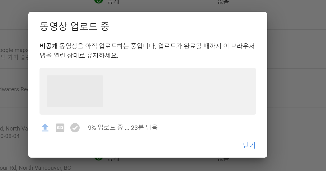 12. 이제 유튜브 채널에 업로드를 해봅니다. 3.5기가 영상 업로드 하는데 30분 정도 걸리는 것 같네요.