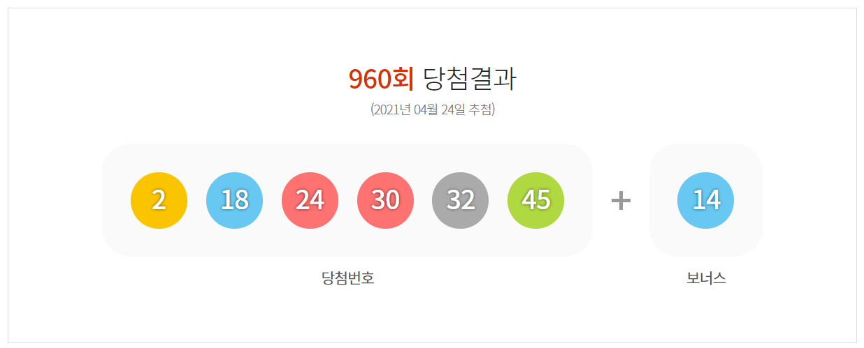 960회 로또 당첨번호 (추첨일 2021.04.24)