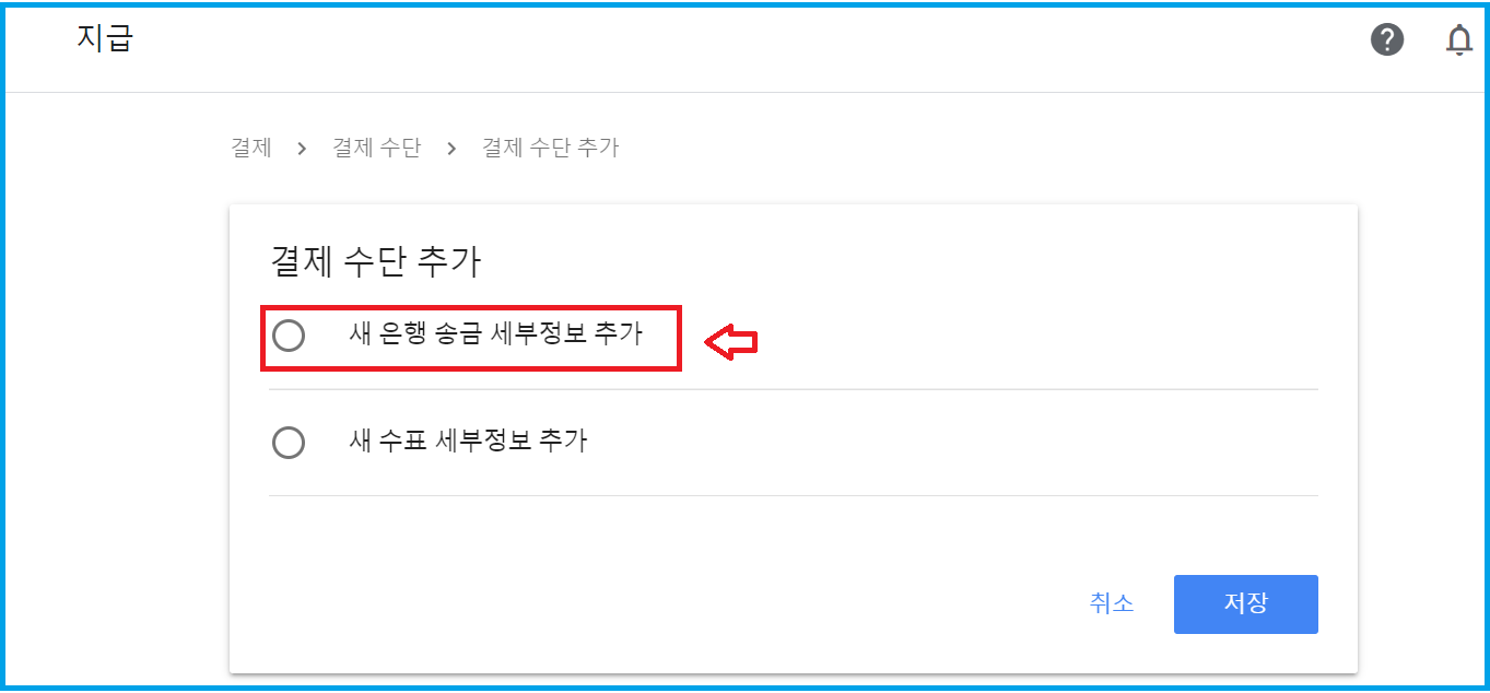 애드센스 계정이 국가(지역)설정이 한국으로 되어 있기 때문에 한국의 시중은행만 사용가능한 것으로 확인되었습니다.