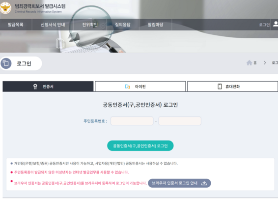범죄 수사경력 회보서를 범죄경력회보서 발급시스템(crims.police.go.kr/main.do)에서 발급을 할 수 있어요.