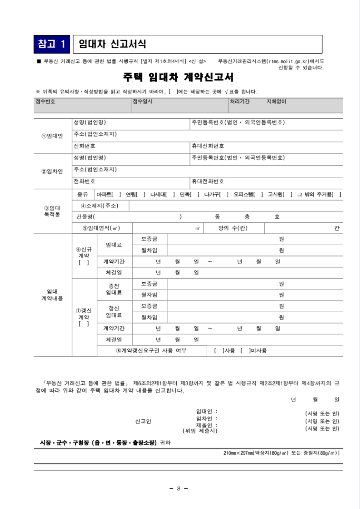 임대차 신고서식