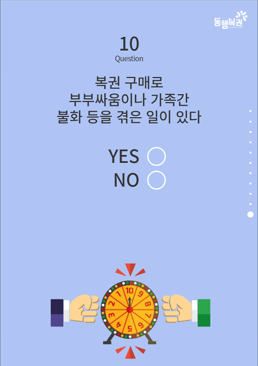 복권 과몰입 자가진단테스트는 총 10문제로 구성 되어 있습니다.