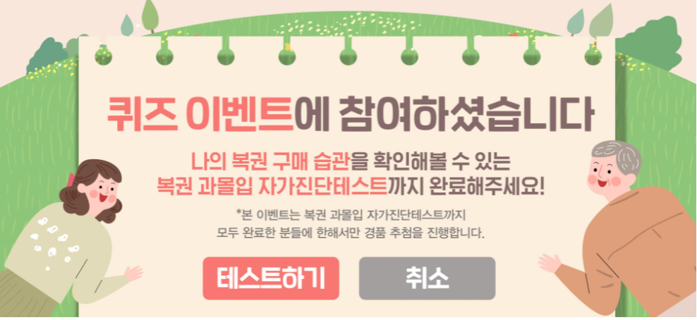 이벤트 참여 후 바로 복권 과몰입 자가진단테스트를 해볼 수 도 있습니다.