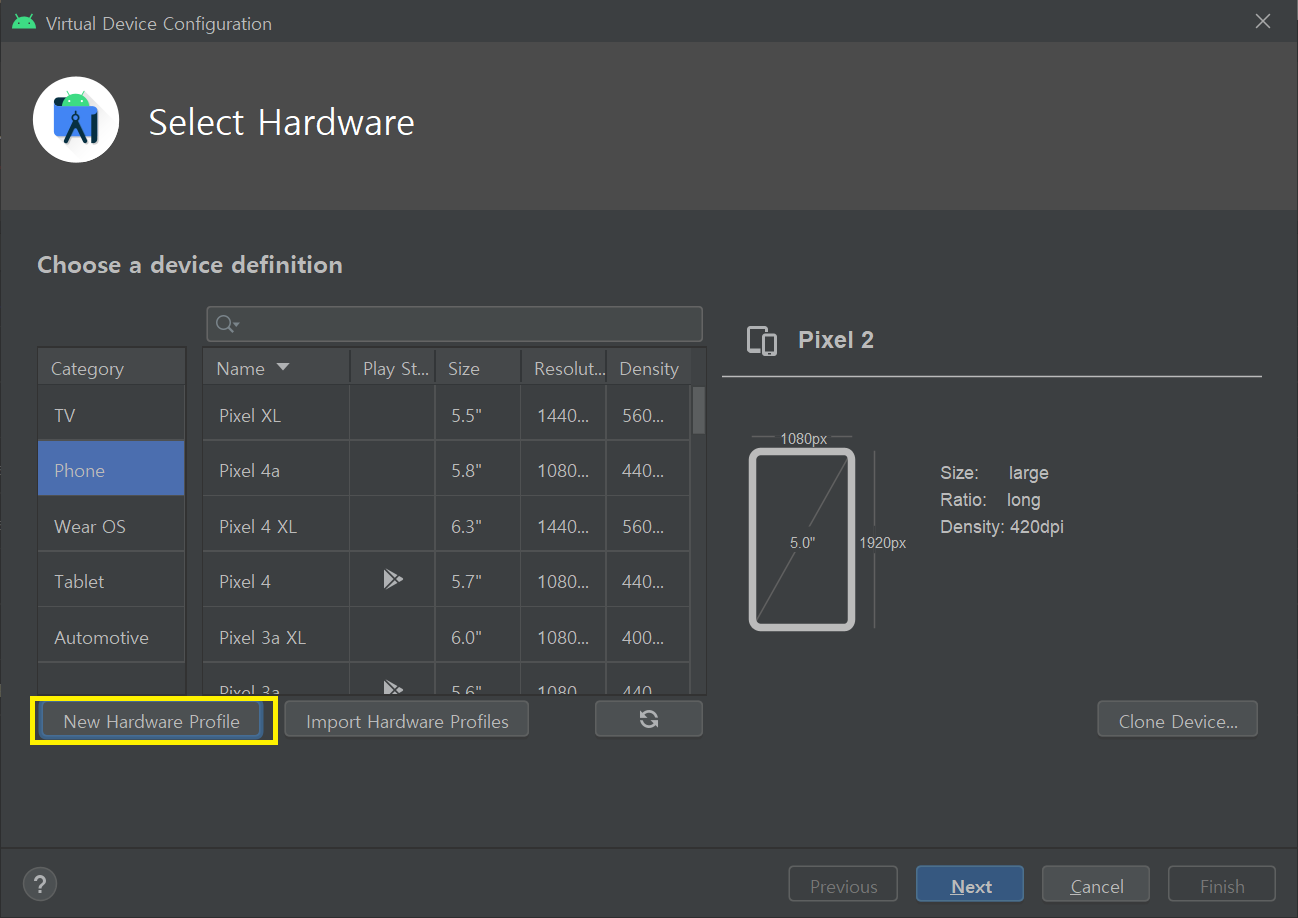 안드로이드 스튜디오에 AVD Manager를 이용하여 에뮬레이터 스킨 추가 하는 방법