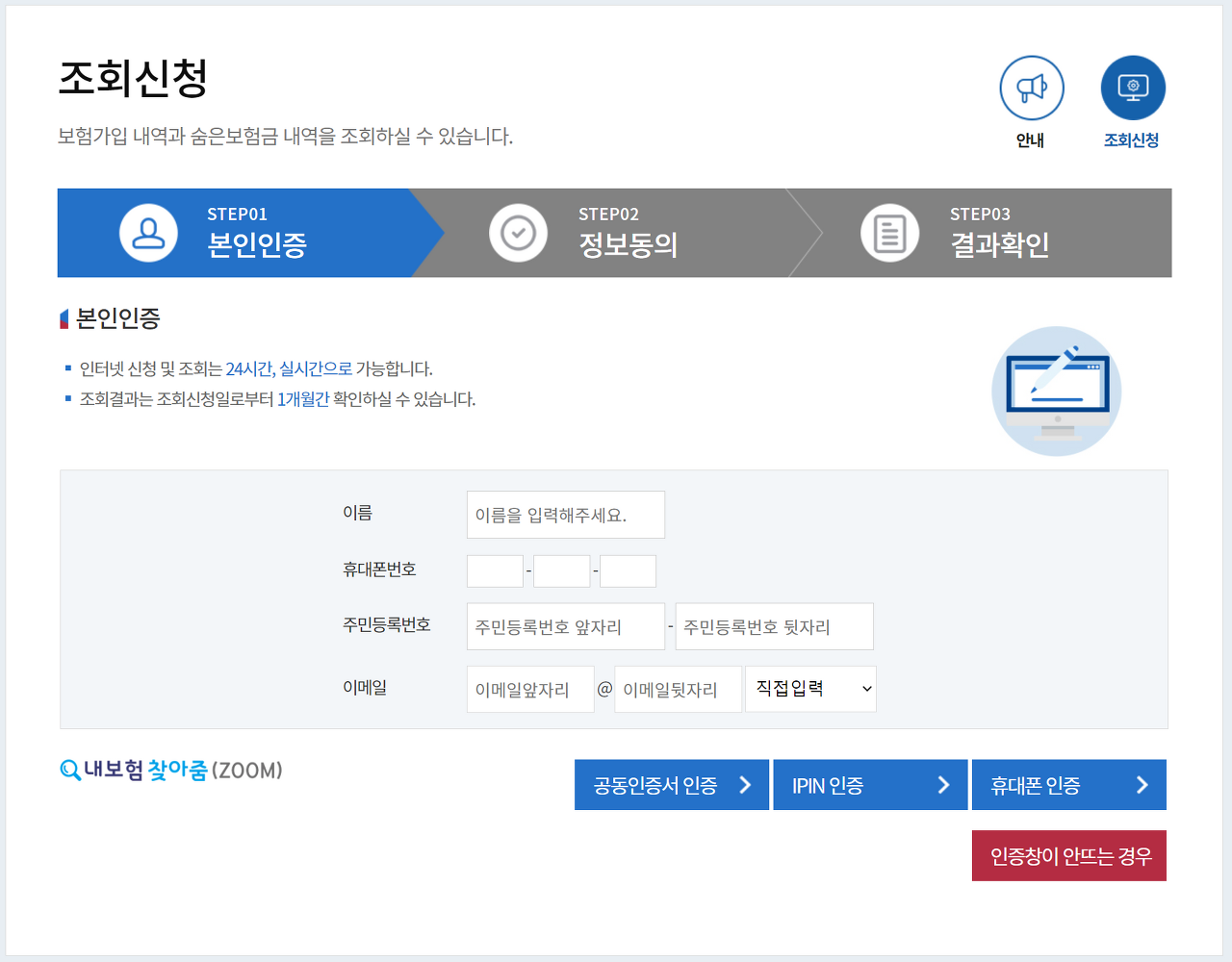 생명보험협회와 손해보험협회가 운영하는 “내보험 찾아줌(ZOOM)” 서비스와