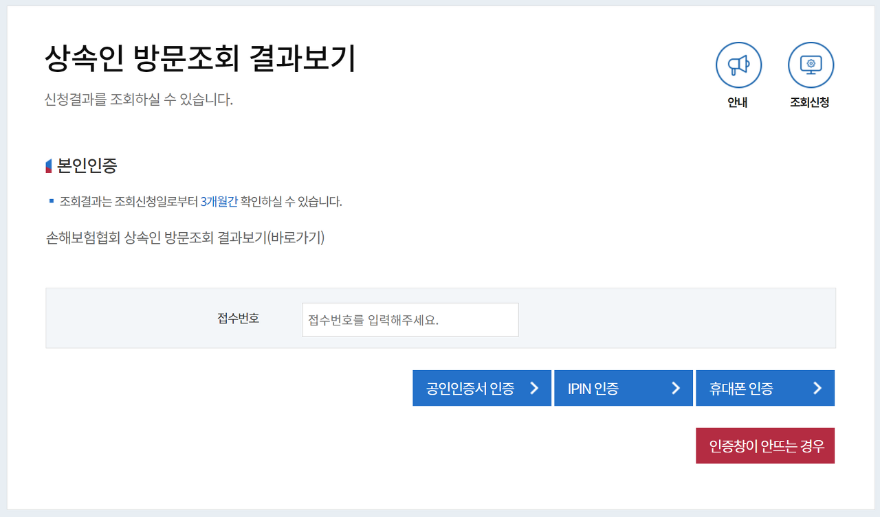 상속인 방문조회 신청결과도 확인 가능합니다.