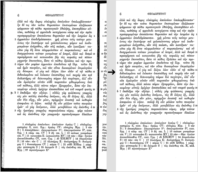 과거 문서에서 번지는 잉크 번짐은 Erosion 기술을 사용하여 보정 할 수 있습니다. 침식은 문자를 정상적인 글리프 구조로 축소하는 데 사용할 수 있습니다.
