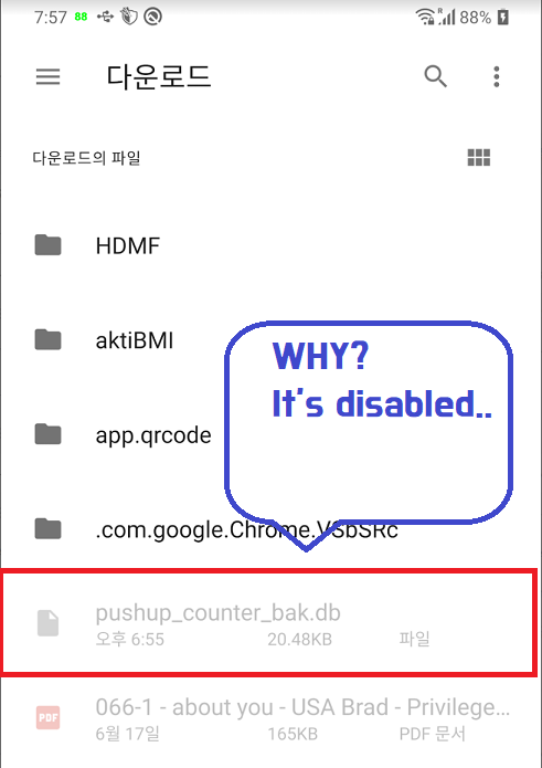 DB 파일을 선택할 수 없음으로 LG G7폰에서는 복구 기능을 구현할 수 없습니다.