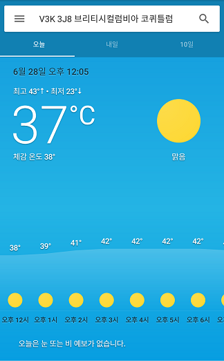 밴쿠버 날씨가 미쳤다. 오늘은 최고 기온 43도까지 오를 전망이다.