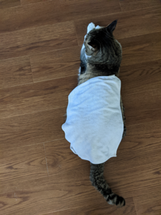어제는 더위를 많이 타는 큰 고양이 한 마리는 등 뒤에 털을 밀어줬다.