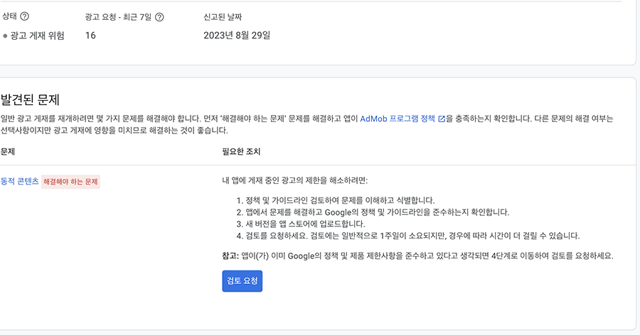 [admob] 애드몹 정책 위반 메일(동적 콘텐츠 문제 해결하기)