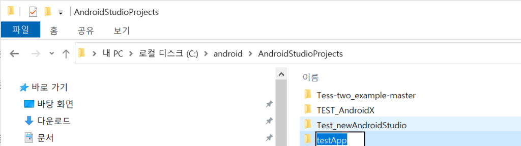 TestApp를 클릭 후 디렉토리명을 변경해본다.