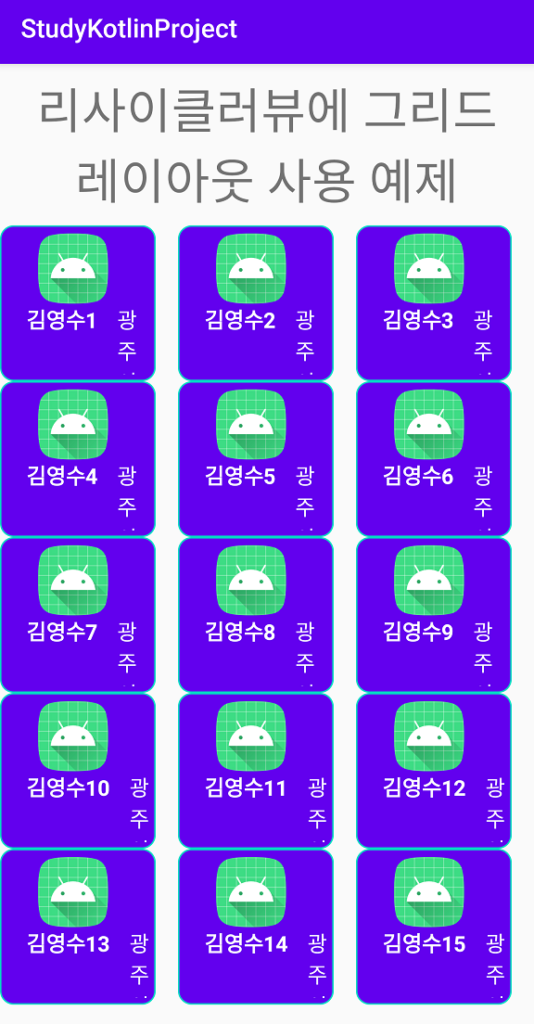 [android : kotlin] 코틀린 RecyclerView 와 GridLayout를 함께 사용하는 방법 및 예제 (GridLayoutManager)