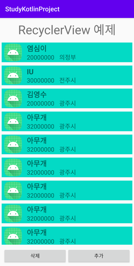 [android : kotlin] 코틀린 RecyclerView 아이템 추가 및 삭제하는 방법