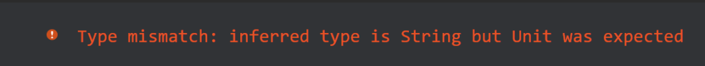 메서드를 생성시 리턴타입을 Unit으로 지정한 경우 리턴값이 존재하면 오류가 발생된다.