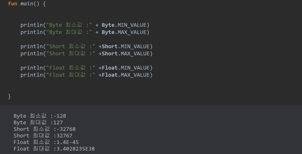 // println("Byte 최소값 :" + Byte.MIN_VALUE)