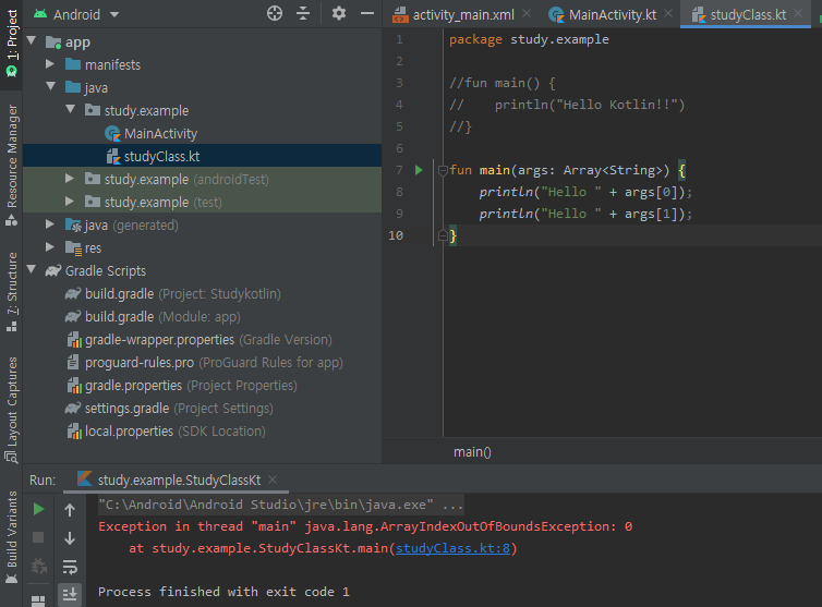 [AndroidStudio] 코틀린 main()함수 코드 작성 및 실행하는 방법 : 코틀린 장점