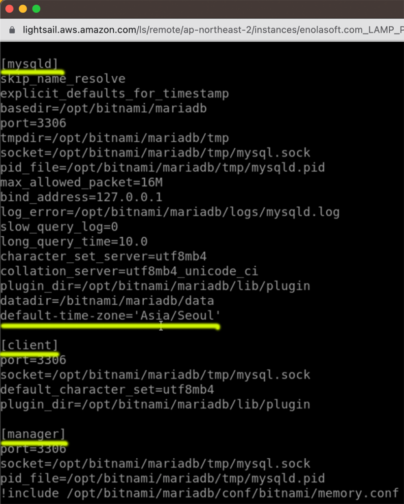 아마존 라이트세일 LAMP를 사용중일 때 mysql 데이터베이스의 설정된 타임존을 변경하는 방법에 대한 기록이다.