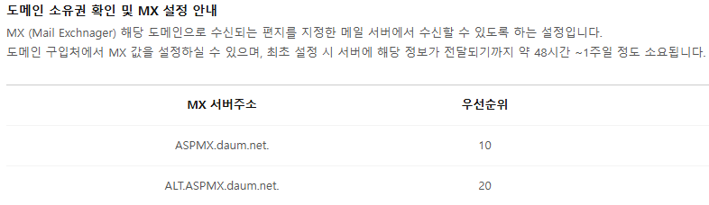 2개의 mx 서버를 모두 등록해주면 됨