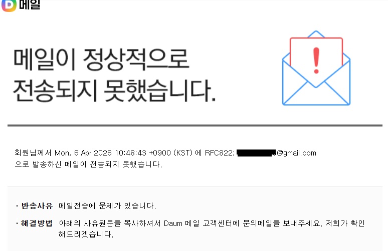 요즘 구글(Gmail)은 스팸과 피싱 메일을 막기 위해 보안 정책을 엄청나게 강화했음. 그래서 메일을 보낸 도메인(내도메인주소.co.kr)의 DNS에 **”우리 도메인은 다음(Daum) 메일 서버를 통해서 메일을 보낼 자격이 있습니다”**라는 인증서(SPF 레코드)가 등록되어 있지 않으면, 스팸으로 간주하고 아예 메일 수신을 차단해 버립니다.
