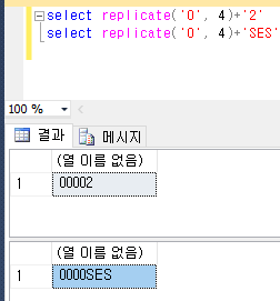 MSSQL 문자열 반복 REPLICATE 함수를 사용한 0 자릿수 채우는 방법