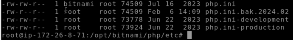비트나미 워드프레스의 php.ini 파일은 /opt/bitnami/php/etc/php.ini 위치에 있다.