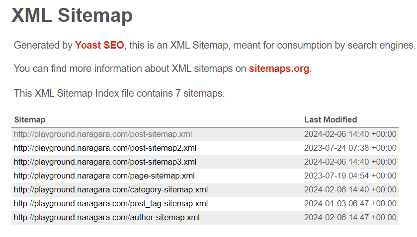 All in One SEO를 제거하고 Yoast SEO를 설치하였다. 그런다음 sitemap.xml 페이지로 접근해보았다.