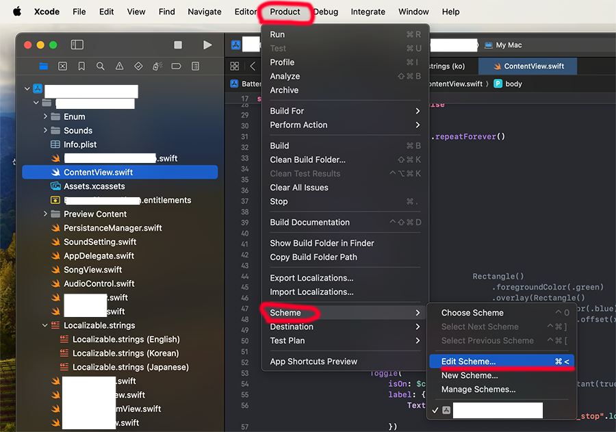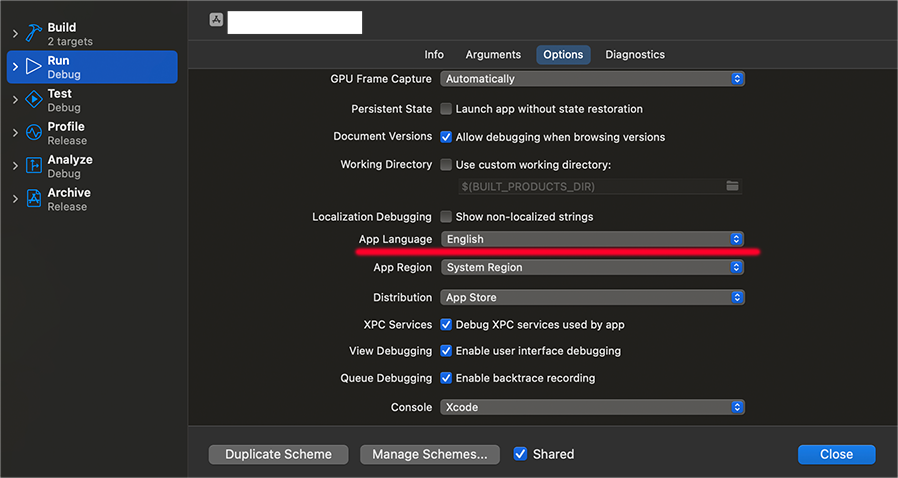 [Xcode] 엑스코드 다국어 설정 했을 때 테스트 실행시 언어 변경하여 확인하는 방법