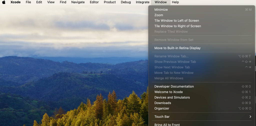 Xcode의 상단 메뉴에서 Window > Oranizer 메뉴를 클릭한다.