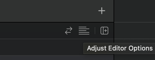단축키가 생각나지 않을때는 Xcode 우측 상단의 아이콘 중에 “Adjust Editor Options” 버튼 클릭하면